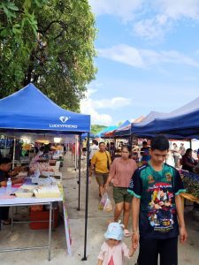 บริเวณตลาดนัดหน้าศูนย์เด็กเล็กเทศบาลตำบลลาดหญ้า ไม่พบการกระทำความผิด
