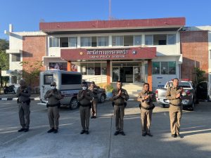 พ.ต.อ.เตชินท์ บรรจง ผกก.สภ.ลาดหญ้า พ.ต.ท.ประโยชน์ สายเงิน รอง ผกก.ป.สภ.ลาดหญ้า พ.ต.ท.ธนภณ ฐากูรธนโชค สวป.สภ.ลาดหญ้า ร.ต.อ.อัศม์เดช ดอกมะลิ ปฏิบัติหน้าที่ร้อยเวร 20 เรียกแถวสายตรวจผลัด ใหม่-เก่า เคารพธงชาติ กล่าวอุดมคติตำรวจ ราชสวัสดิ์ 10 ประการ ชี้แจงข้อราชการ กำัชการปฏิบัติตามโยบายการต่อต้านการรับสินบน (Anti- Bribery Policy) ไปปฏิบัติ และประกาศไม่รับของขวัญและของกำนัลทุกชนิด (No Gift Policy) จากการปฏิบัติหน้าที่ โดยให้ปฏิบัติโดยเคร่งครัด