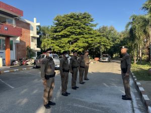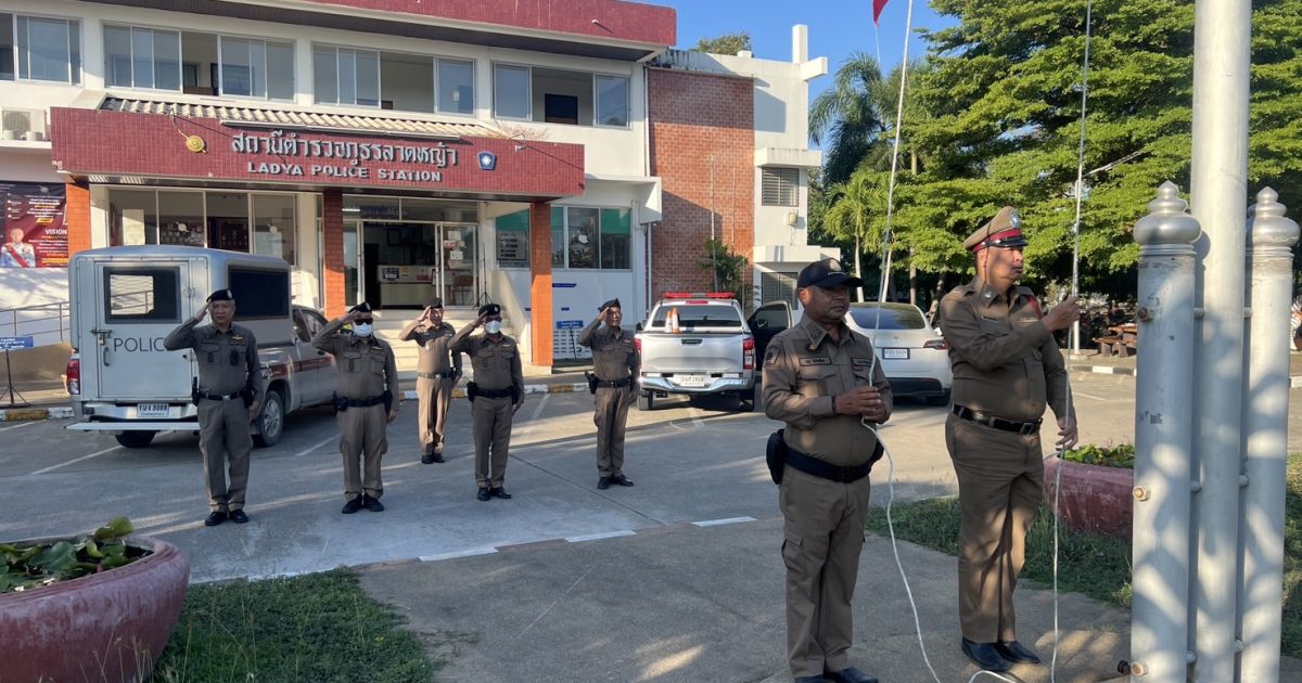 พ.ต.อ.เตชินท์ บรรจง ผกก.สภ.ลาดหญ้า พ.ต.ท.ประโยชน์ สายเงิน รอง ผกก.ป.สภ.ลาดหญ้า พ.ต.ท.ธนภณ ฐากูรธนโชค สวป.สภ.ลาดหญ้า ร.ต.อ.อัศม์เดช ดอกมะลิ ปฏิบัติหน้าที่ร้อยเวร 20 เรียกแถวสายตรวจผลัด ใหม่-เก่า เคารพธงชาติ กล่าวอุดมคติตำรวจ ราชสวัสดิ์ 10 ประการ ชี้แจงข้อราชการ กำัชการปฏิบัติตามโยบายการต่อต้านการรับสินบน (Anti- Bribery Policy) ไปปฏิบัติ และประกาศไม่รับของขวัญและของกำนัลทุกชนิด (No Gift Policy) จากการปฏิบัติหน้าที่ โดยให้ปฏิบัติโดยเคร่งครัด