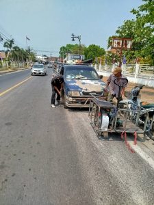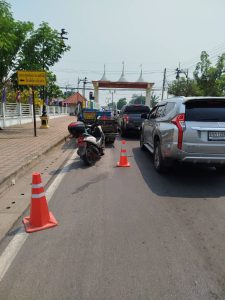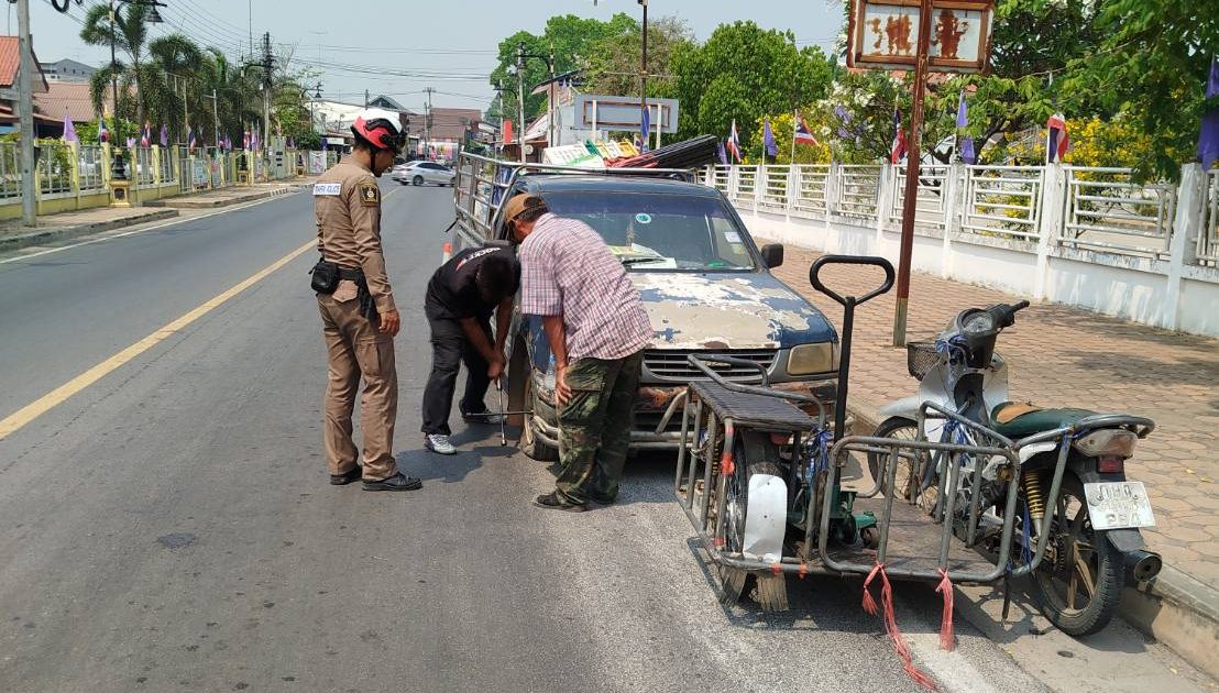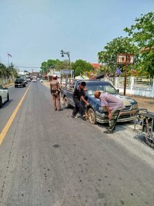 ว.4ช่วยเหลือประชาชนรถยนต์ยางรั่วบริเวณสี่แยกไฟแดงลาดหญ้า จึงได้ประสานช่างมาเปลี่ยนยางทำให้รถยนต์ของประชาชน ขับต่อไปได้