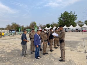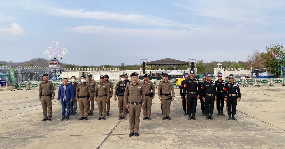 สวป.สภ.ลาดหญ้า พร้อมกำลังเจ้าหน้าที่ตำรวจ สภ.ลาดหญ้า รวม 17 นาย ว.4 ว.30 ป้องกันเหตุ ดูแลรักษาความปลอดภัย และอำนวยความสะดวกจราจร ให้แก่ประชาชนที่มาร่วมกิจกรรม เนื่องในงานคอนเสิร์ต อำลา สามช่าคาราบาว ครั้งสุดท้ายที่ จ.กาญจนบุรี ณ กองถ่ายนเรศวร กองพล ร.9 (ค่ายสุรสีห์) ม.1 ต.ลาดหญ้า อ.เมือง จ. กาญจนบุรี