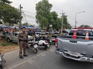 ว.4 ตรวจตราป้องกันเหตุ ประชาสัมพันธ์ให้นำกุญแจออกและล็อคคอรถจักรยานยนต์ทุกครั้ง บริเวณตลาดนัดลาดหญ้า ม.1 ต.ลาดหญ้า อ.เมือง จว.กาญจนบุรี