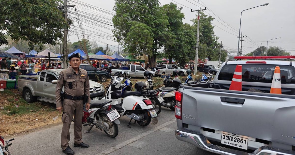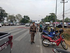 ว.4 ตรวจตราป้องกันเหตุ ประชาสัมพันธ์ให้นำกุญแจออกและล็อคคอรถจักรยานยนต์ทุกครั้ง บริเวณตลาดนัดลาดหญ้า ม.1 ต.ลาดหญ้า อ.เมือง จว.กาญจนบุรี