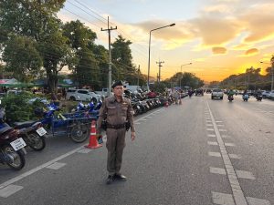 ว.4 ตรวจปัองกันเหตุจุดเสี่ยงจุดล่อแหลม บริเวณ ตลาดนัด เทศบาลลาดหญ้า ม.1 ต.ลาดหญ้า ประชาสัมพันธ์ให้ล็อคคอรถจักรยานยนต์และถอดกุญแจรถไปด้วยทุกครั้ง