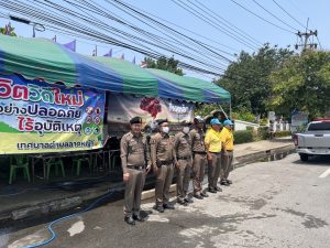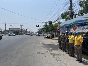 ว.4 ตรวจเยี่ยมจุดบริการประชาชนอำนวยความสะดวกจราจร บริเวณ สี่แยกลาดหญ้า ม.1 ต.ลาดหญ้า อ.เมือง จว.กาญจนบุรี ช่วงเทศกาลสงกรานต์ 2567 พบเจ้าหน้าที่ตำรวจปฏิบัติหน้าที่ เหตุการณ์ทั่วไปปกติ