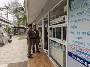 ออก ว.4 ประชาสัมพันธ์สถานประกอบการโรงแรม รีสอร์ท เฝ้าระวังกลุ่มจีนเทาที่เข้ามาเปิดห้องพัก หากพบกลุ่มบุคคลต้องสงสัยให้แจ้งเจ้าหน้าที่ตำรวจ ให้ทราบเพื่อดำเนินการต่อไป ได้ตรวจตราประชาสัมพันธ์ โรงแรมรีสอร์ท ดังนี้