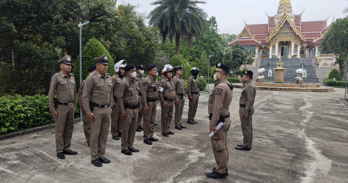 ปล่อยแถวข้าราชการตำรวจปฎิบัติหน้าที่รักษาความปลอดภัยและอำนวยความสะดวกการจราจร รัฐมนตรีช่วยว่าการกระทรวงการคลังและคณะในพื้นที่รับผิดชอบ ณ วัดทุ่งลาดหญ้า ม.1 ต.ลาดหญ้า เวลานี้
