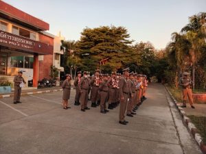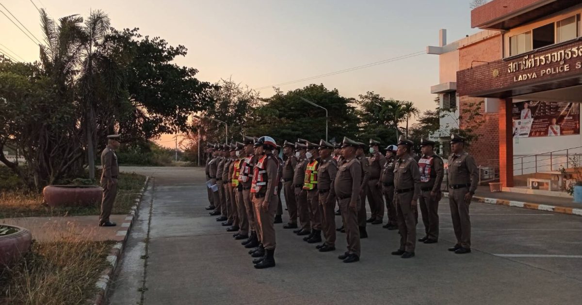 พ.ต.อ.เตชินท์ บรรจง ผกก.สภ.ลาดหญ้า ว.28 ชี้แจงภารกิจ ถปภ. ฯ ตรวจความพร้อม ขตร.ในปกครอง
