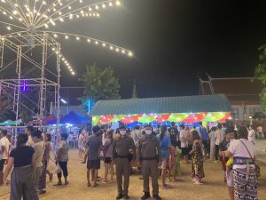 ว.4 ตรวจป้องกันเหตุและอำนวยความสะดวก ประชาชนที่มาร่วมชมงาน ประกวดนางนพมาศ ประเพณีสงกรานต์ประจำปี พ.ศ. 2567 ณ วัดกาญจนบุรีเก่า(ท่าเสา) ม.2 ต.ลาดหญ้า อ.เมือง จ.กาญจนบุรี