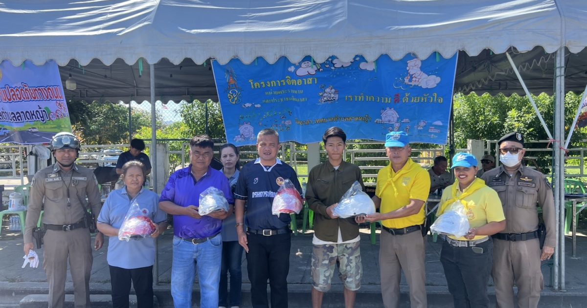 พ.ต.อ.เตชินท์ บรรจง ผกก.สภ.ลาดหญ้า มอบหมายให้ พ.ต.ท.ประโยชน์ สายเงิน รอง ผกก.ป.ฯ(งานจิตอาสา)