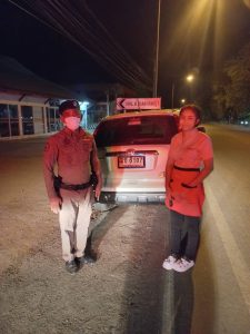 สายตรวจรถยนตร์221 ว.4 ให้การช่วยเหลือรถยนต์น้ำมันหมด กำลังนำน้ำมันมาเติมให้ ไม่กีดขวางการจราจร ม.4 ต.ลาดหญ้า