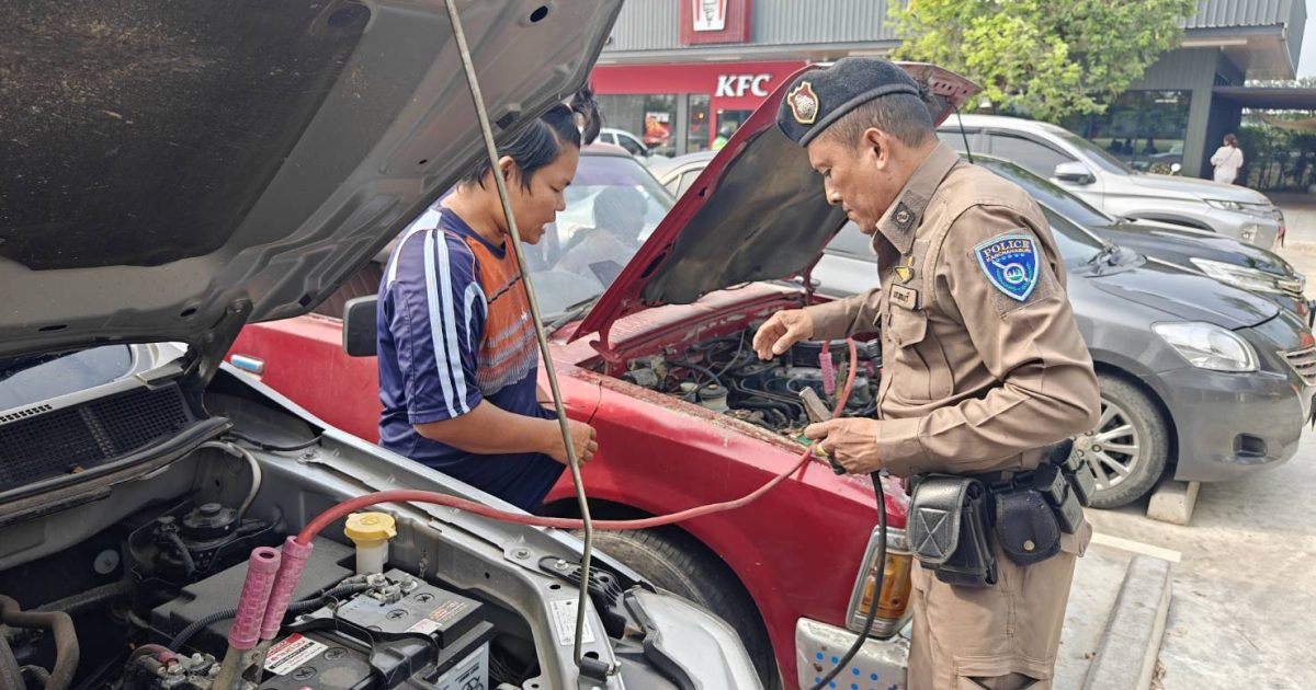 ว.4 ให้ความช่วยเหลือรถยนต์แบตหมด บริเวณ ปั๊มน้ำมันปตท. ม.1 ต.ลาดหญ้า ได้ช่วยพ่วงแบตเตอรี่ให้ไปต่อได้เพื่อจะไปเปลี่ยนแบตเตอรี่ต่อไป