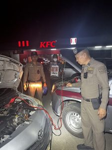 ให้ความช่วยเหลือ รถเก๋งแบตเตอรี่ไฟหมด บริเวณ สถานีบริการน้ำมัน ปตท.ลาดหญ้า