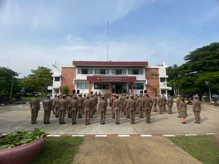 ต่อมาในปีงบประมาณ ๒๕๕๑ ได้รับงบประมาณจากสำนักงานตำรวจแห่งชาติวงเงินงบประมาณ เจ็ดล้านบาทให้ก่อสร้างอาคารที่ทำการใหม่ จึงได้ก่อสร้างอาคารที่ทำการขึ้น ตามแบบอาคารสถานีขนาดเล็ก แบบเลขที่ ม.๐๕๐/๔๔ ดังสภาพปัจจุบัน ตั้งอยู่ เลขที่ ๓๐๐ หมู่ที่ ๒ บ้านท่าเสา ตำบลลาดหญ้า อำเภอเมือง จังหวัดกาญจนบุรี